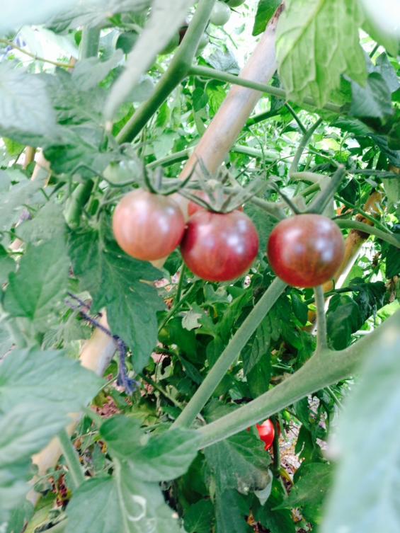 Bunu da 3-4 sene önce üyelerimizden Sayın Douglas Fir'den satın almıştım. İri siyah domatesler(Cherokee Purple) veriyor. Lezzetli ve ince kabuklu bir çeşit. Daha ermesine var.