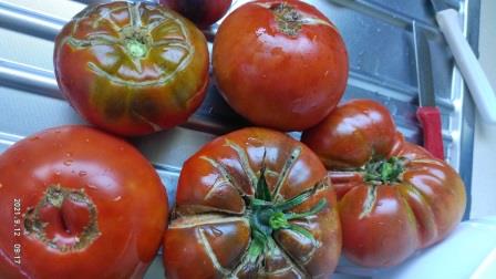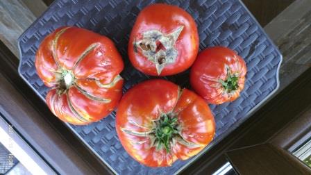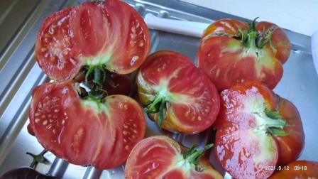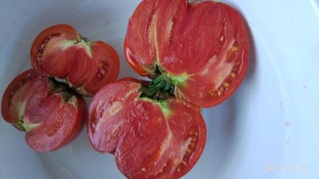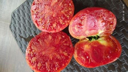 Dört yıldır paylaşıyorum, bu beşinci yıl. @hcorak ın paylaşımından alınmış. Oldukça büyük meyveler verebilen (önceki sene rekoru 1.060 gr.) sırık, bol etli, sulu, incecik kabuklu, düzgün hatlara sahip, ağızda eriyen bonfile gibi domates. Yemeklere hangi domatesi ekliyeyim derseniz kesinlikle bu derim.