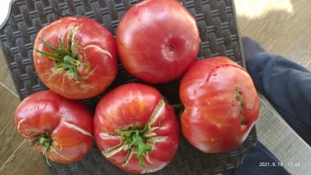 2015 yılında anatohum projesi ile @birnefestoprak ın paylaştığı Maniye domatesi önceki yıllarda ben de ekip paylaşmıştım. Lezzetli olmasına rağmen oldukça kıvrımlı yapısı sebebiyle hanım kabuklarını soyamadığını söyleyince ben de bu çeşidin ekimini bırakmıştım. Bendeki eski resimlerine bakarsanız haksız da değildi aslında :rolleyes: Geçen sene elimdeki tohumları canlandırmak/yenilemek adına üç dört kök ektim. Ancak ortaya düz hatlara, incecik kabuğa, bol etli ve sulu yapıya sahip bol ürün veren, hastalığa dayanıklı (en azından iki yıldır) 200 gr. ağırlıkta bu domatesler çıktı. İki yıldır stabil şekilde aynı özelliklere sahip domatesler elde ediyorum. Seneye ekeceğimiz çeşitler üç önceki ve üstteki çeri ile birlikte beşe çıktı.