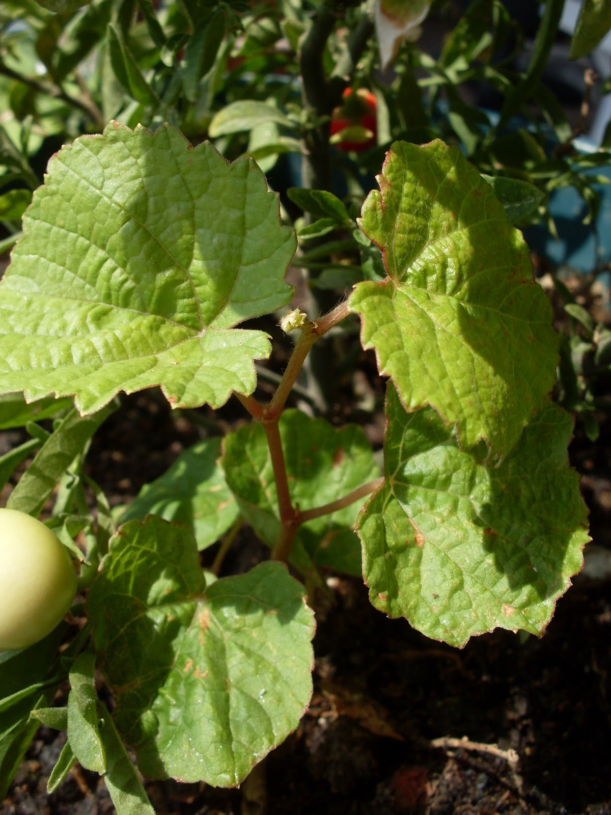 Bugün farkettim, galiba üzüm çekirdeğinden çıkmış. Süs domatesimin saksısında kendisi.
