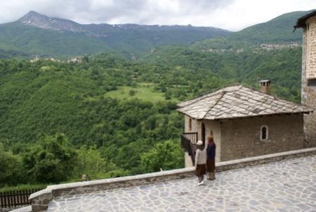 27 km sonra Kiliseye varıyoruz. Burada bizi tavus kuşları karşıladı. Makedonya’da kiliselerde tavus kuşları bol miktarda var. Yeniden yaşama dönme ile ilgili bir inanış nedeni ile besleniyorlarmış. Bu kilise öncelikle içinde bulunan ikonaları ile meşhur, sonra da kilisenin kurulu olduğu alanın manzarasının güzelliği ile. İkonaları yapan ustaların ismini ve eserlerini Üsküp’te Sveti Spas kilisesinde duymuş ve görmüştük. İçeriyi fotoğraflamak yasak olunca foto alamadık. İçeride bize rehberlik eden kilise görevlisi ile biraz tartıştık. Kilisenin Osmanlı tarafından yıkıldığını söyledi. Ben öyle okumamıştım ve Osmanlı’nın kiliseyi, cami yaptığını biliyordum ama yıktığını pek duymamıştım. Belki de olabilir. Kilise bahçesinden karşıdaki Rostuse köyüne baktık. Hedef orası.