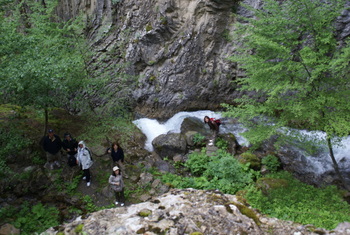 Kısa bir yolculuk sonrası köye geldik, ekipte biraz yorgunluk emareleri var. Öğle yemeğini de ayak üstü yapınca açlıkta başladı. Köyde insanlar turiste alışık ama Türk olduğumuzu görünce “ne işiniz var burada” ifadesi ile bakıyorlar. Bizim kahveleri andıran bir kahvede Türk kahvemizi içip (Makedonya’da her yerde harika kahve yapıyorlar) Rostuse şelalesi için yürümeye başladık. Bir iki damla yağmur düşmeye başladı. İçimden “Aman Tanrım biraz daha müsaade et de şu şelaleyi de görelim” diye dua ediyorum. Bir kilometre kadar yürümek lazım. Yürüyüş yolu çok güzel ama yağmur hızlandı. Yağmur yapraklardan yol bulup bizi ıslatamıyor. Altı yüz metrede ilk şelaleyi gördük ama yağmur artık işi abarttı. Bir gözüm insanlarda, Allahları var sesleri çıkmıyor ama işi de zorlamamak lazım. İleri de esas şelale 100 mt yüksekten akıyor ama buradan ileri gitmeyelim dedim. Grup dünden razı, orada kesip, birkaç fotoğraf sonrası dönüşe geçtik. Araca döndüğümüzde ıslanmıştık ama şelalenin gördüğümüz kadarı bile bizi mest etti.