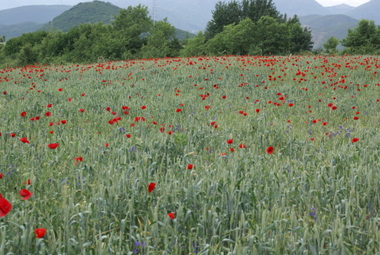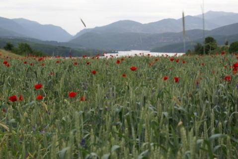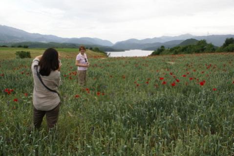 Araca binince Debar şehrine doğru yola düştük. Eşim gelincikleri çok sever. Bol gelincikli bir tarla ve arka fonda da Debar gölü olunca, Stefan’dan aracı durdurmasını rica ettim. Manzara harikaydı.