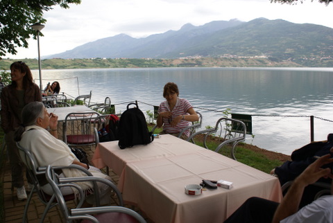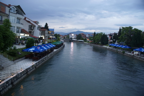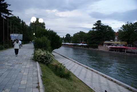 Burada Drim nehri kenarı yürüyüş yaptık, civarda mağazalar var ve meşhur Ohrid incileri vitrinlerde tüm cazibeleri ile bizim bayanlara bakıyor. Ama bizim bayanlar hiç yüz vermiyor demek ki artık sıfır tükendi. Hemen bir lokantaya girip güzel bir akşam yemeği yiyoruz. Kahvelerimizi içip 14 km ötede ki Ohrid şehrine vararak, kalacağımız otele yerleştik.