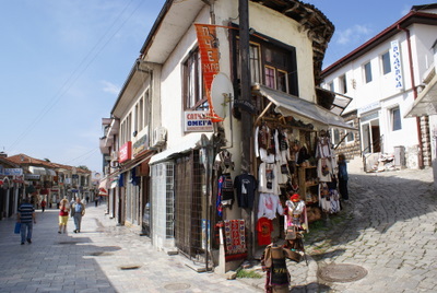 Ohrid şehir turu yaklaşık olarak 4 saat kadar sürüyor. Dünya Kültür Mirası şehirleri arasında bulunan Ohrid gezisine hemen otelin önünde bulunan eski Türk Çarşısından başladık. Dün gece yorgunluktan camekanlara bakamayan hanımlar tam formda bir oraya, bir buraya koşturuyor. Önce Halveti Tekkesine girdik ama bu Tekke diğer gördüğümüz örneklere göre iyi bir örnek değil.