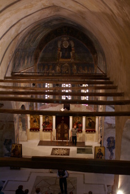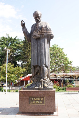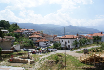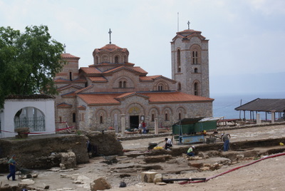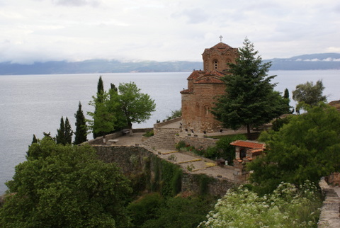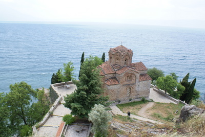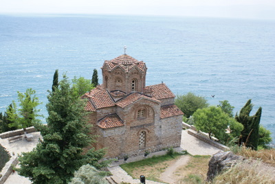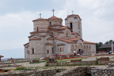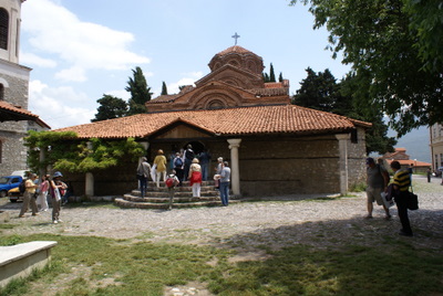 Daha sonra St Sophia Kilisesine geldik. Bu kilise, içindeki freskoları ile meşhur. Gerçekten çok güzeller. Sonra Antik Tiyatro ve devamında Kaleye çıktık. Kaleden, Ohrid şehri çok güzel gözüküyor. Burada gezdiğimiz en güzel kilise Sv. Bogorodica Perivlepta kilisesi. Burası minicik bir Kilise ama 1295 tarihli ve kilise içinde Rönesans öncesinde, Rönesans dönemi güzelliği ve özelliğinde freskolar var. Ayrıca ilk Slav alfabesi ile yazılan yazılar, kilisenin mermer taşlarına kazınmış. Hemen yan tarafta okul olduğunu öğrendiğimiz bina, Elveda Rumeli dizisinde Kaymakamlık makam binası rolünü oynuyor.