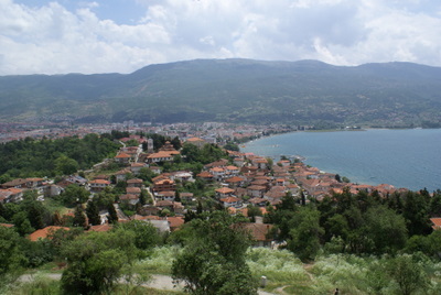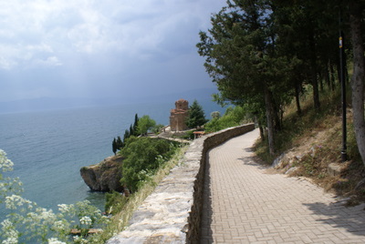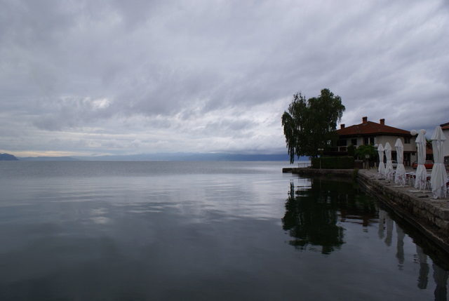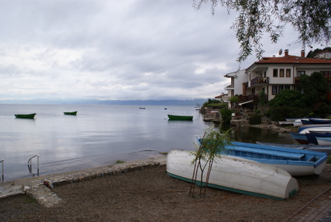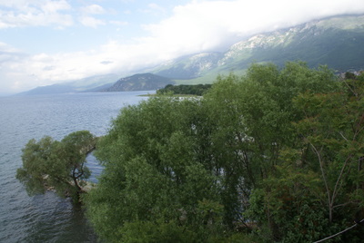 Ohrid Gölüne gelince; Ohrid gölünün tam 3 milyon yaşında olduğu düşünülüyor. Göl Avrupa’nın en derin olan gölü (288 mt) ve 358 km2 lik bir alanı kapsıyor. Yazın burası Makedonlar için yüzme için tatile geldikleri yer. Biz de mayoları yanımızda götürdük ama hava yüzmeye pek müsaade etmedi. Bu göl 200 civarı endemik su canlısını barındırıyor. Galicica ormanlarına komşu olan doğu bölgesi, gölün en güzel yeri.