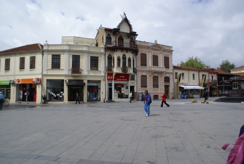 Manastır’a Türklerin ilk gelişi 1382 yılları. Yani Manastır aslında uzun yıllardır Türklerin elinde kalmış bir şehir. Manastır’da gezimize saat kulesi (1664) ile başladık. Eski Türk yerleşimlerinde Çarşı varsa, başında veya sonunda saat kulesi de oluyor. Elveda Rumeli dizisindeki Terzi Hasan, Kasap Cabbar ve diğerlerinin dükkanlarının çekimlerini olduğu alan bu çarşıymış. Sağlı sollu dükkanlar, kepenkleri bile eski haliyle duruyor. Bedesten’in artık bir özelliği kalmamış gibi, Haydar (Ajdar) Kadı Camisini (Mimar Sinan tarafından 1561-62 yıllarında yaptırılmış) ise göremedik. İbadete de , geziye de kapalı imiş.