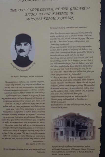 Manastır Askeri idadisindeki, 2. Kattaki Atatürk Müzesinde, girişte sizi karşılayan ve duvara asılmış bu güzel dizelerin sahibi olan Manastırlı genç kız işte bu evde yaşamış. Hayatımda bu kadar güzel bir aşk mektubu okumadım.