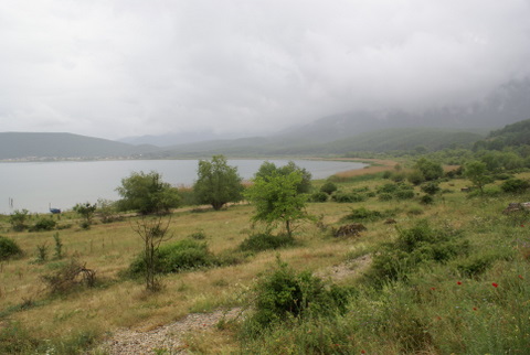 Günün son gezisi Prespa Gölüne. Burası Ohrid gölüne göre 100 mt daha yukarıda kalan göl. Yol çok güzel ama bir yağmura yakalandık ki sormayın. Oldu mu bu şimdi? Bir taraftan sis, bir taraftan yağmur. Ohrid gölü ile Prespa Gölü arasında Galicica Milli Parkını görmemiz gerekiyordu. Sadece kısa bir alanı görmeye müsaade var, Stefan pür dikkat yola bakıyor. Zevkle bitireceğimiz geziyi, biraz eziyetle bitiriyoruz. Bu kısım için Makedonya’dan alacağım var.