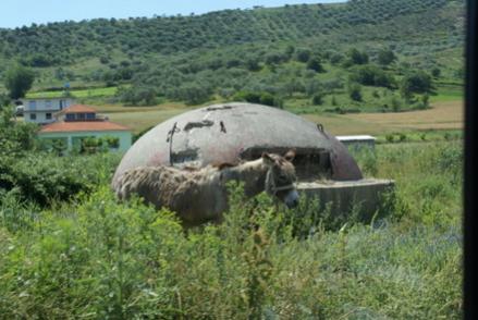 Hedefimiz Elbasan üzerinden Berat şehrine varmak. Geceleme orada. Bugün hepimiz için önemli. Berat, Arnavutluk’ta en çok merak ettiğim yerlerden. Bu küçük şehir, Osmanlının en çok izlerini taşıyan şehir. Sınırdan girer girmez Bunker denen sığınakları görmeye başladık. Bunkerler, yani sığınaklar, Enver Hoca’nın Ruslar tarafından işgal edileceğini düşündüğü için bombalara karşı yaptırdığı yerler. Bunların sayısını 700000 ler civarında olarak okumuştum ama Rehberimiz Kliti bu sayının 160000 ler civarında olduğunu söylüyor.