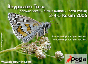 Doğa Derneği projelerine destek sağlamak amacıyla 4-5 Kasım 2006 tarihlerinde Beypazarı’na gidiyoruz. İstanbul ve Ankara çıkışlı olan ve Beypazarı ve Sarıyar Barajı’nı içeren turumuz, sizleri Beypazarı'nın eşsiz kültürüyle buluşturmanın yanı sıra, bilinenin ötesinde yepyeni heyecanlar yaşamanızı sağlayacak. Beypazarı'nın yanı başındaki akbabalar, kartallar, kanyonlar, yaban kazları ve balıkçı köyleri onları keşfetmenizi bekliyor. Beypazarı’ndaki doğa turizmini geliştirme çalışmaları Beypazarı Belediyesi ve Doğa Derneği ortaklığı ile ve Birleşmiş Milletler Küresel Çevre Fonu (GEF) Küçük Destek Programı altında gerçekleştiriliyor. Detay için tıklayın... |
