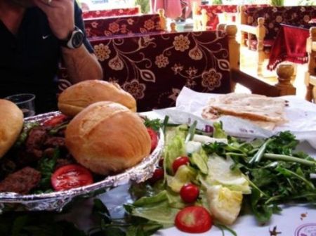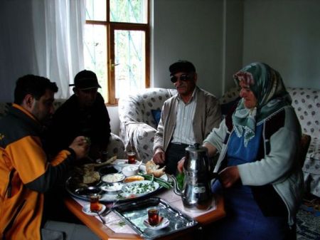 Pazartesi günü Ankara’da Turizm bakanlığı ve rafting malzemeleri ile ilgili işleri hallettikten sonra, tavsiye üzerine gittiğimiz köftecide lezzetten çok sunuma şaşırdık. Kağıt masa örtüsü serildi üzerine koca bir tepsi dolusu, salatalık, marul, roka, tere, maydanoz, nane, domates tabaksız olarak dağ gibi yığıldı. Ortaya ayaklı bakır sahanda gelen köfteleri bitirdik ama yeşillikler kaldı. (israfla ilgili işletmeyi uyarmadan duramadık tabi). Eklenti 43000 Hiç durmadan Bafra’ya geldiğimizde gecenin bir vakti Fahri’nin Yusufeli’nden öğretmen arkadaşlarına uğradık. Yaşar hoca ve eşinin sıcak karşılaması hazırladıkları çay masası ve ısrarları sonucu, Doğanay ve benim bütün çekinmemize rağmen, Yaşar Hoca ‘’misafirlerimin otelde kaldığı duyulursa ben Bafra’da dolaşamam’’ deyince gece orda kaldık. Okullarının ve öğrencilerinin başarısını anlatırken öğretmen karı-koca ne kadar da mutluydu. Sabah kuymaklı nefis kahvaltıdan sonra bu güzel aileyle vedalaşarak yola çıktık. Bu arada Giresun’da da Fahri’nin doktor arkadaşı Enver’le çay molasında buluştuk. Eklenti 43002 Fahri’yle Karadeniz gezisi yapacaksanız hazır olun yol boyu her yerde arkadaşlarıyla buluşacaksınız. Bu arada rafting hocamız Neco’yu resmi görevinin başında ayak üstü selamladık. |