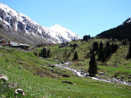 Önsöz: Fahri ne der bilmiyorum ama, Yusufeli’nde artık çalacak kapılarımız var bizim. Pırıl pırıl, gülen gözleri ile Ekrem ve Meryem, Kılıçkaya’dan Zeynep Kardeş, Peterek’ten Nurettin abi ve eşi rol yapmıyorlar, tüm samimiyetleri ile davet ediyorlardı. Gözlerinizi kapatınca Leyla konuşuyor sanırsınız Esma ve eşi, Sayın İlhan Hocamız, Gezi keyfinin de tanıdığı Sinan Hocamız. Onları unutamayız, bizim kapımız da onlara her zaman açık. Eklenti 43017 Perşembe günü program : Kılıçkaya ,Aros dağı,Mayhoşun suyu,Göllü mezra. Ekrem’in katılımıyla yola çıktık, tutmayın biz ! Ben Yusufeli ve yaylalarının yollarını gördükten sonra Datça yolunda göbek atarak giderim. Geçen yıl İntkor, bu yıl Aros. (Bunu söylerken daha Peterek’ten Cuvar yaylasına çıkmamıştık.) Eklenti 43018 Yusufeli’nin coğrafyası ancak tek yönlü yollara izin veriyor. Karşılaşınca araçlardan hangisi müsaitse geri geri gidip birbirine yol veriyor. Ama insanlar alışık, korku yok kimsede. Bir yanımızda gürül gürül Çoruh, bir yanımızda dağlar, kayalıklar, yol deseniz dar. Fahri ise direksiyonda, gözü Çoruh’ta.Rafting için nehre bakıyor. Yusufeli’ne gelmeden önce Mayıs ayında suyun çok yüksek olacağını düşünüyorduk gördük ki geçen yıl Haziran sonundan bile daha az. Neyse daracık yolda ilerlerken bir de yol çalışmasına rastlamaz mıyız? Dozer kenara çekildi, zar zor geçmeye çalışırken Ekrem dur, dur diye feryat etti ama arabanın tamponunun kesilmesine mani olamadı. Sayın dozer operatörü kenara çekilmiş, ama bıçaklarını toplamamış.Bu arada frenlerimizde hala problem var ama biz dağa tırmanıyoruz,Olsun.! Arabaya bir yolcu daha aldık,Hatice Abla..Kılıçkaya yolundayız artık. Kılıçkaya bölgesi 3202 m.lyükseklikteki mescit Dağlarının kuzeyinde 3932 metre yükseklikteki Kaçkarların Güneyinde Yaklaşık 1200 metre yükseklikte yerleşiktir.Bölgede 3523m.`lik zirvesi ile Güngörmez Dağları da dikkati çeker. Türkiyenin ilk bayan Belediye Başkanı 1928-1930 yılları arasında Kılıçkaya!da görev yapmış. (Sadiye Hanım) Beldede tarihi Ersis Kalesi yıllara direniyor. 2100m`lik Aros Yaylası’nda gür sarıçam ormanları içinde harika kamplar kurulabilir. Temmuz ayında yapılan şenliklerde geleneksel karakucak güreş yarışmaları yapılıyor. |