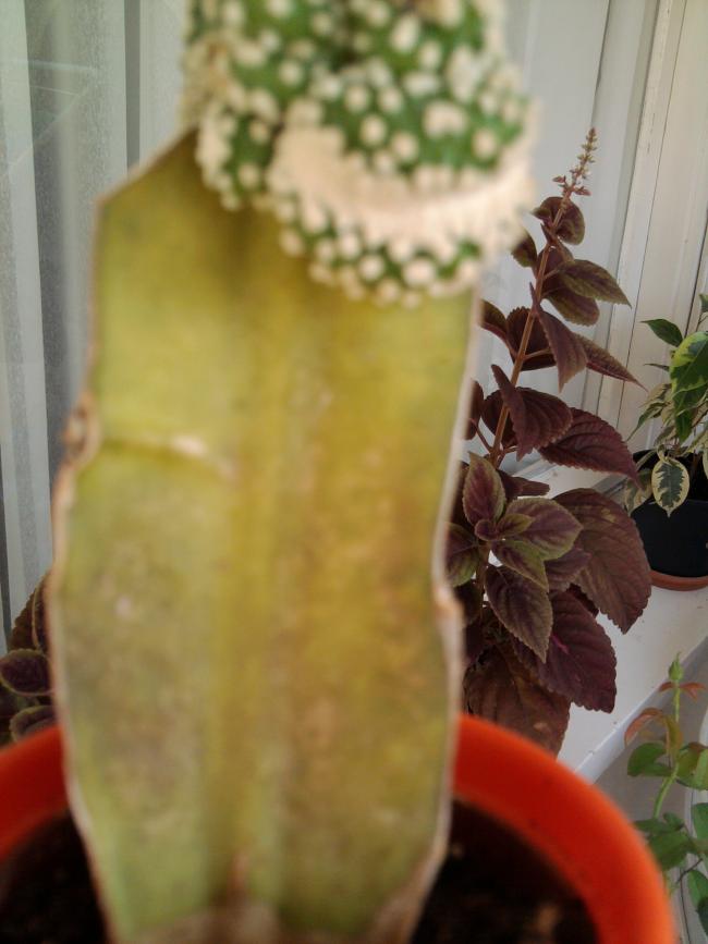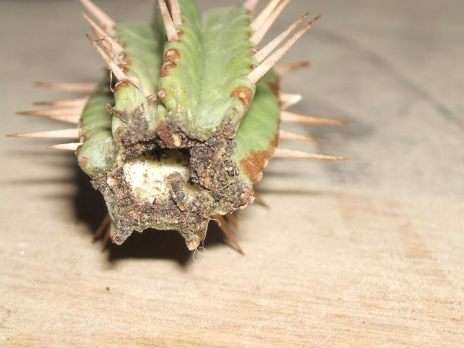 Arkadaşlar,kaktüs'lerinde problem olan varsa (benimki gibi) resim leriyle birlikte çare üretelim,üretelim ki yavrularımızı kurtaralım. İlk resim dekini denildiği gibi çürük yerinin hafif üstünden kestim kurumaya bıraktım.İki üç gün beklesem yeter herhalde.(yoksa daha fazlamı bekleteyim?) 2.ve 3.resimdekilere kıyamıyorum bıçak değdirmeye,cinayet işlemek ten korkuyorum. Desteklerinizi bekliyorum..Saygılar. |