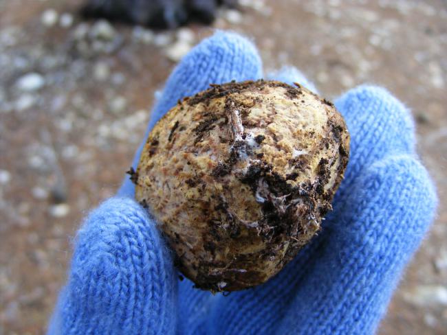 Mantar, küremsi, birazca uzun ve armut veya soğan, patates şeklinde, 3 cm kadar ceviz büyüklüğündedir. Yüzeyi derin, dar oluklu, labirent gibidir. Dış kısmı kösele gibi, esnek ve sarı esmer renktedir. Gençken saman rengindedir, daha sonra esmer ve pas rengine değişir. Yüzeyi ince tüylüdür, bilhassa dibinde, bükülmüş yuvarlak, ince esnek iplikler vardır. Etli Kısım Yarıklı, katı ve başlangıçta beyazımtraktır, daha yaşlandığı zaman zeytin yeşili kahverengi olur ve lapa gibi bir kitle halinde erir. Kuruyunca oldukça serttir ve renk bakımından sarımtraktır. Koku Önceleri zayıftır, daha sonra gübre suyu veya hayvan pisliği gibi fenadır. Yetişme Yeri ve Zamanı Oldukça nadir bulunan bu mantar her yerde yetişebilir. Özellikle kumlu iğne yapraklı ve çam meşçereleri toprağında yapısı toprak içinde olmak üzere gelişir. Temmuz-Ekim ayları arasında görülür. Domalan mantarının bir başka türü de aşağıda resmini gördüğünüz, Rhizopogon rubescens olarak adlandırılan mantardır. Bu mantar da toprak içinde gelişir. Bu Domalan mantarı türünde; Mantar toprağa tamamen gömülü veya kısmen dışarı çıkmış olabilir. Büyüklüğü 4 x 7 cm kadardır. Düzensiz şekilde küre gibidir. Toprak altında iken genç mantar saf beyazdır, bastırılan kısımları gül rengi ila pembeye döner. Toprak dışına yeni çıkartılanlar önce beyazdır, daha sonra yukarı kısmı zeytin yeşili lekeli sarımtrak, aşağı kısmı beyazımtrak olur, yaşlı nümuneler daha da koyulaşır, kuruyunca kahverengi veya siyah lekeli esmer bir renk alır. Dış Kısım: Yüzey hemen hemen düzgündür, fakat bazı sırtlar, kanallar ve çöküntüleri vardır. Yarım milimetre kadar kalınlıkta, taze iken saf beyazdır, kesildiği zaman et gibi pembeye veya gül rengine döner. Yapışkan olmayıp, birçok kahverengi kristaller ve sıkı şekilde bir araya gelmiş ipliklerden ibarettir. İç Kısım: Taze iken saf beyazdır, bastırıldığı zaman pembemsi olur, ancak zaman gelince kesilen kısımlarda pembelik kaybolur ve yaşlı nümuneler kesildiği zaman soluk kahverengileşir, kuruyunca soluk zeytin yeşili rengini alır. Oldukça katı ve dayanıklıdır. Önceleri tadı ve kokusu yoktur. Kurutulanlar da kokusuzdur, kendi kendine yok olmakta olan nümuneler çürümekte olan elma veya çilek gibi güzel bir kokuya sahiptir ki bu durumda mantar böcekler tarafından istila edilmiş haldedir. Spor izi: Açık esmerimtrak sarıdır. Yetişme Yeri ve Zamanı: Kışın ve sonbaharda, kumlu çıplak topraklarda ve- ya ince çayırlıklarda, daima çam, sedir ve meşe ağaçlarına yakın ve bunların altındaki toprak üzerindeki gevşek ölü yaprak tabakasının hemen altında gelişir. Kaynak : http://www.ogm.gov.tr/sites1/mantar3.htm Ülkemizde değişik bölgelerde yetişen bu mantar türünü ilk kez geçen yıl yağan bol yağmurlar nedeniyle Eskişehir pazarlarında satışının yapılması nedeniyle tatmıştım. Fiatlar ilk başlarda 20-25 TL iken daha sonra bollaşması üzerine 10 TL ye düşmüştü. Bol olarak almış ve derin dondurucuda bir bölümünü saklamıştık. Hatta son kalanları da eşime, "yenisi çıkacak eskisini daha yiyemedik" demiş ve pişirmiştik. Normal kültür mantarlarına göre daha farklı ve lezzetli değişik bir tadı vardı. Bu yıl ise yeniden çarşamba pazarında satışa sunulduğunu gördüm. 25 TL fiatı vardı. Umarım bol olarak bulunur ve fiatları biraz daha düşer. |