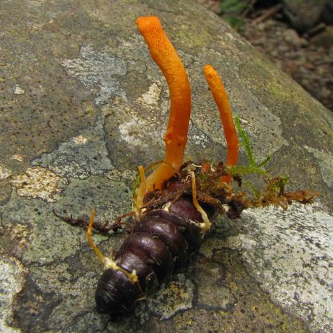 cordiceps denen bir mantar türü var. genelde ölü böcekler üzerinde görülüyor.