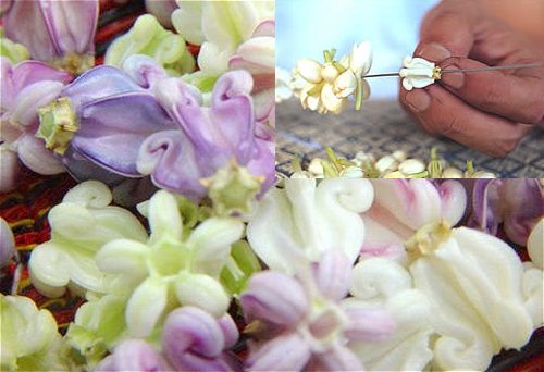 Bitkiye " Bahce hoyasi " demeniz cuk oturmus, gercekten evimin hemen arkasindaki bos arazide gordugum bu bitki yaklasik 3-4 metrekare bir alani isgal etmis, kocaman yapraklari, odunsu dallariyla harika duruyor, uzerinde yuzlerce mavimsi cicekleri var ![]() Burada taylar bu cicekleri toplayip cicegin gobek kismini cikarirlar ve ipe dizerler ilaveten 2 veya fazla adet jasmine ve baska ciceklerle ve renkli kurdelalarla susleyip inanclari geregi evlerin girislerinde ki budha sunaklarina ve arabalarin aynalarina asarlar, goruntuleri cok hos acikcasi. Tayca ismi "DOK RAK"tir. Birkac fotograf paylasayim sizlerle http://3.bp.blogspot.com/-nNKHL5VPO9...ang-malai4.jpg http://4.bp.blogspot.com/-pkHkZ5Zldo...s1600/6337.jpg http://2.bp.blogspot.com/-YO8brZLQLu...0613180629.jpg Saygilar |