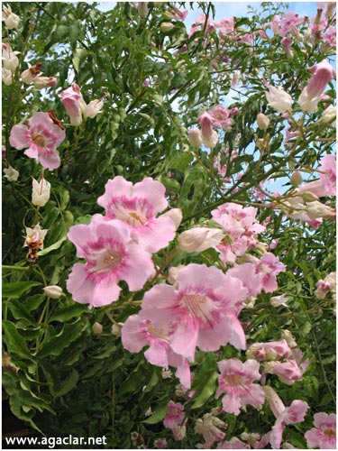 Bahçemde Podranea ricasolianadan güzel bir örnek var , birde yasemin türünden var . onuda tohumdan elde ettim , henüz daha küçük . Çiçekleri birbirine çok benziyor . Podranea yasmin sanırım sarmaşık türü , ricasolina ise