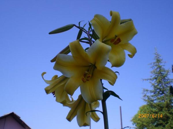 Benim bahçemde olan bu liliumlar buna örnek olabilir mi? Boyları 2m den daha uzun. Renkleri uçuk pembe, çok hoş kokulu ve çiçekleri aşağıya doğru ve her defasında bir dal üzerinde 13-15 arası çiçek oluyor.