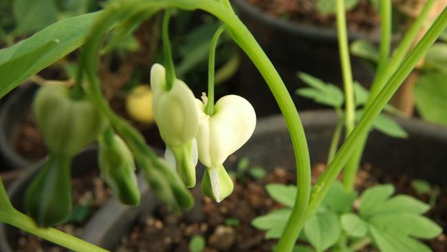 İngiltere'den yeniden 10 beyaz ve 10 pembe ağlayan kalp getirttim, 3 tane beyaz yolda ölmüş. Diğerlerini de saksılara diktim.