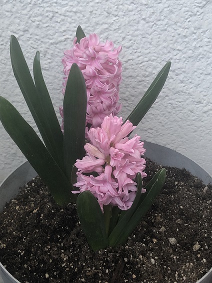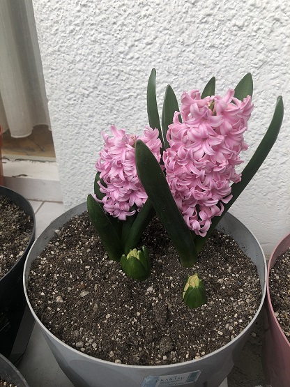 Bu yılın pembe sümbülleri. 5 soğandan biri henüz boy vermedi... (Umarım çürümemiştir)