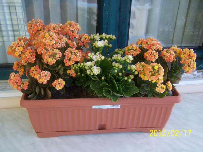 Çeşitli renklerdeki Kalanchoelarımı yaz sonu büyük bir dikdörtgen saksıya fideleyip, gençleştirdim. Şimdi hepsi tomurcuklu, en küçüçüğü bile:)