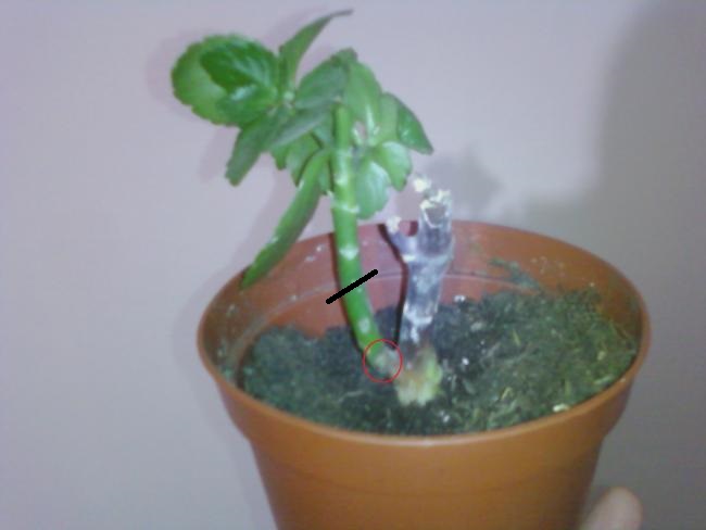 merhabalar. resimdeki yavrucak bir dizi kazadan sonra bu hale geldi. resimde kırmızı çembere alınan kısım torağın biraz altında idi. kuruyan kısmın toprak altındaki durumunu merak edip çevresini küçük bir fırça yardımı ile açtığımda çember içindeki kısımda yumuşama ve hafif yaralar olduğunu gördüm. sorum şu sizce mevcut kök ile devam etmeli miyim yoksa kalan son kısmı kesip yeniden çillendirmek daha mı iyi olur. alakanıza şimdiden teşekkürler.
