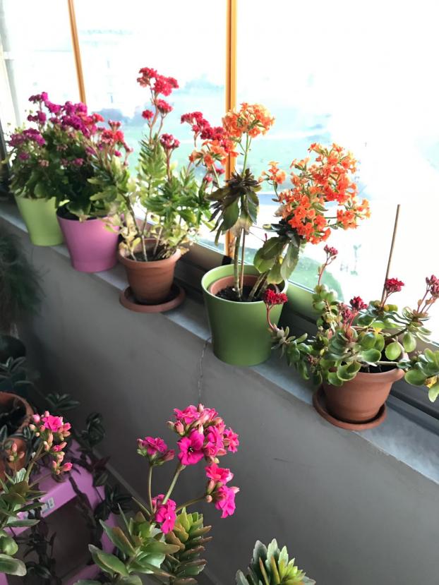 Bu da benim kalanşom. Daha doğrusu bir saksıda iki tane var. Biri mor biri turuncu. Sanırım az güneş aldığından boyuna gitti. Malesef evim çok çok az ışık alıyor. Sağlıklı görünüyor mu?