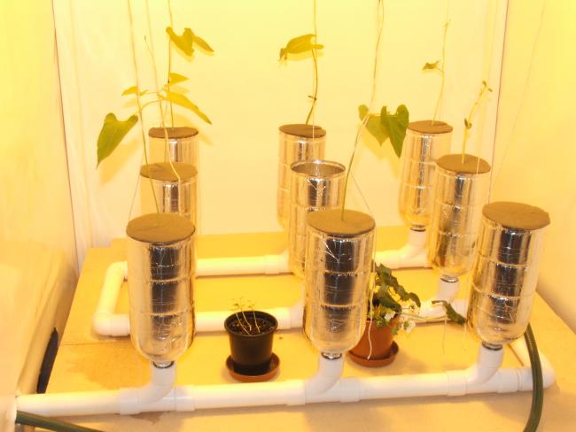 Kurdugum bu duzenekteki avantajlar ve dezavantajlar. 1.Kucuk kokle buyuk bitki ve meyve elde edilmesi kokler resimdede goruldugu gibi ic ice ve SIK ve sert bir yerde toplu. 2.Saglikli kok yapisi. Koklerin kahve rengi olmasinin sebebi son 3 haftayi organik sivi gubre denemesinin sonucu.Organik sivi gubreler uzun sureli degil suyu degistirmek zorundasin ve gubre israfi . 3.Benzer sistemlerine (ebb and flow,deep water culture)nazaran daha az su gerektiren. 3.Yapay gubre gerektirmeyen.(Dengelme icin sunger haric) 4.Temizligi ve kontrolu cok kolay ve hizli. 5.Malzeme azligi ve kalite. 6.Ucuz.Az ilgi gerektiren. 7.Ph yesermede uzun sureli sabit.Ciceklenme ve meyve asamasindaki 3 haftadan sonra ph dengesi 2 haftada bi ayar gerek. 8.Tohumdan fide icin uyumlu.(sungerin arasina tohumu koyup yine ayni olcudeki kesik pet sisenin agiz tarafi olan kismini ustune kapatip suyun sicakligini 22-24 derecede tutmaya calisin)(fasulyede calisti.)kucuk thumlularda denemedim siradaki deneme biber ve domates. Yani ayriyeten tohum-fide-transfer ile ugrasmiyorsun.(teste)@@@ Saygilar.. |