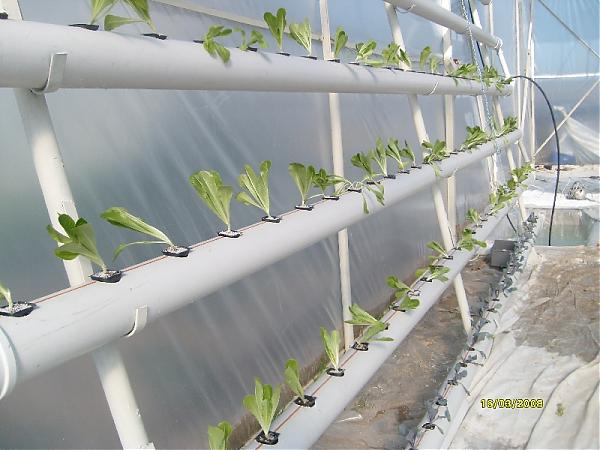 Buharlaşma kaybı da önemli bir sorun. 70 lik PVC boruda 56 mm lik deliklerde, yarım parmak su borusunda kullanılan ısı yalıtım süngerlerini dikim yeri olarak kullandım. Marul kalınlaşınca bu süngerleri kesip çıkardım. Böylece fide zamanında buharlaşma kaybı az olmuş oldu. |