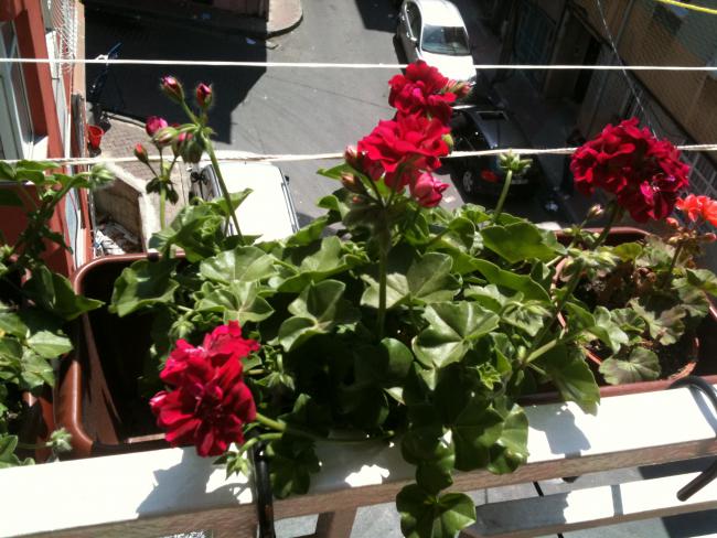 çok eskiden babaannem yetiştiridi kırmızı sardunyaları . Kocaman yağ tenekelerinde uzaktan her gören merak ederdi. Şimdi ben bu görevi devraldım ![]() |