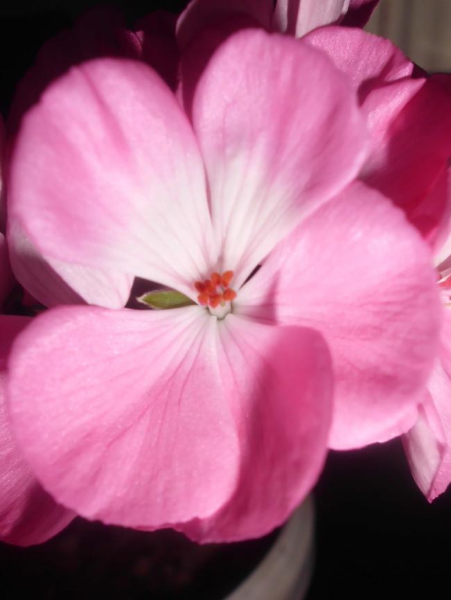 sadece yedeği olan kırmızı sardunyamı gözümün önünde olsun diye (çiçeklerimle hasret kalacağım çünkü yaza kadar) pencere önünde bırakmıştım, o çiçeklendi ama yazın kırmızı olan çiçekler pembe olarak açmıştı