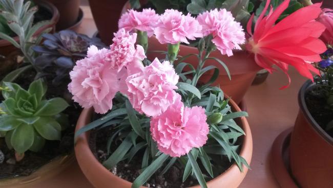 Kokusu yok sandığım lakin çok güzel koktuğunu yeni farkettiğim karanfilim çiçeklerini açmaya devam ediyor...